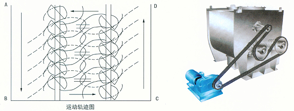 本机由电机通过减速机、链轮带动二根平行的主轴以一定的转速作等速反向转动。  以一定角度安装在主轴上的桨叶将物料抛洒到整个容器空间,使物料处于瞬间失重状态,广泛交错对流、扩散,从而达到均匀混合。对比重和粒径及形状差异悬殊的物料混合时不会产生偏析,是一种迅速高效的粉体混合设备。本机可按用户要求,增加夹套及分散棒,也可提供气动出料及喷液装置。接触物料部分材质为碳钢或不锈钢。