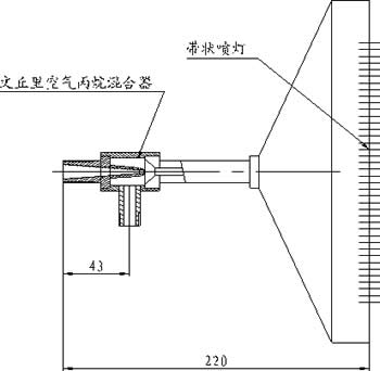 一、本设备主要用于成束电线电缆耐燃检测设备上的检测,喷射器后部接鱼尾状喷灯或圆口喷灯,喷灯的设计附合GB/T8380.3-2001,或BS EN50200:2006标准。