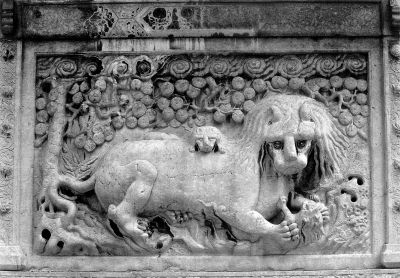 还有一些“萌狮子”不爱梳头。大多数情况下,石狮子都是梳着整齐的“卷花头”,这个卷称为“螺髻”,代表着身份等级。比如,一品官员府可以摆“十三太保”,就是石狮头上有十三个卷。之后,每低一级,狮子头上的卷就要减少一个。您不用担心会出现秃头狮子,因为七品以下官员的门前就不能再摆狮子了。而碧云寺石牌坊坊心有一只“披头散发”的母狮,狮子前爪有一只小狮子,正仰头与母狮子玩耍。另一只淘气的小狮子干脆悄悄爬上母狮子的背,探出一个小脸儿,同样是披散着头发。 |